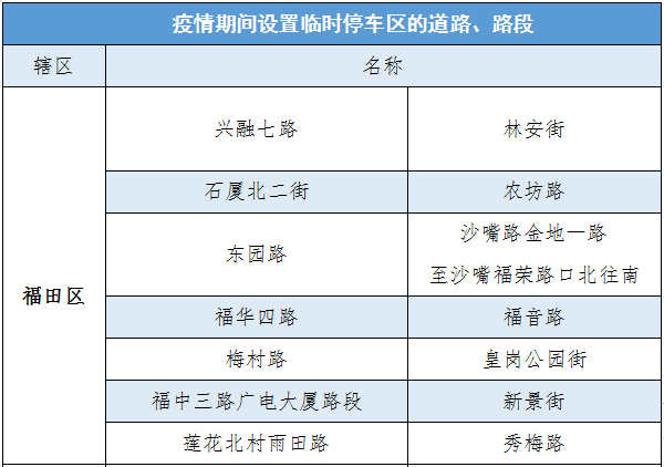 經(jīng)綜合考慮,深圳交警決定撤銷(xiāo)上述三個(gè)車(chē)輛臨時(shí)停放路段,截至2020年3月6日,深圳交警共在全市170條路段,做為疫情期間道路臨時(shí)停車(chē)區(qū),具體設(shè)置路段請(qǐng)看表格。