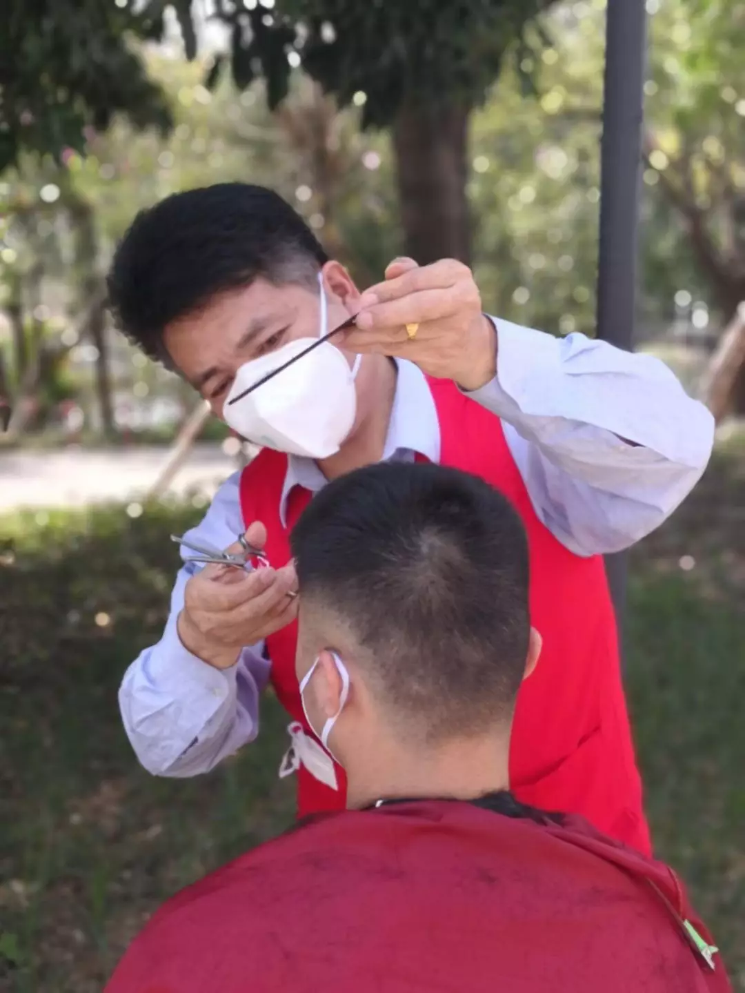 這天,垃圾吊師傅石明山急匆匆找到寶安能源生態(tài)園團(tuán)總支志愿者服務(wù)隊(duì),“我以前開(kāi)過(guò)理發(fā)店,工具就在宿舍,我可以義務(wù)給大家理發(fā)!”大樹(shù)下,一套工具,兩把塑料凳,老石的“疫剪理發(fā)站”就齊活了。一個(gè)下午,老石一刻不停地為近50人修剪了精干的發(fā)型,并獲得“顧客”的一致好評(píng)。老值長(zhǎng)陳林生理完發(fā)感慨道:“老石在廠里十幾年了,這么多年都是垃圾吊隊(duì)伍的中堅(jiān)力量,沒(méi)想到理發(fā)技術(shù)也這么好!”天黑了,預(yù)約隊(duì)伍里還有數(shù)十人在排隊(duì),石明山說(shuō),明天我白轉(zhuǎn)夜,等我后天下夜班,“疫剪理發(fā)站”咱們繼續(xù)!