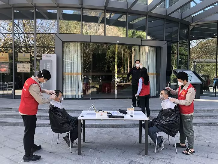 二月二,龍?zhí)ь^,一把椅子、一面鏡子、一套剃發(fā)工具,鹽田能源生態(tài)園的簡(jiǎn)易理發(fā)室開(kāi)張啦。防疫先鋒戰(zhàn)斗隊(duì)五人義剪小分隊(duì)隨即開(kāi)始行動(dòng),對(duì)理發(fā)室開(kāi)啟自然通風(fēng),對(duì)理發(fā)用具進(jìn)行消毒,清潔雙手,全部使用一次性“斗篷”,確保理發(fā)過(guò)程中一“客”一換一消毒……準(zhǔn)備工作做好后,Tony老師開(kāi)啟微信排號(hào),統(tǒng)一戴上口罩,測(cè)量體溫登記后,提拉剪推,一氣呵成。本次義剪為30余名員工解決了“頭”大事,大家“輕裝上陣”,將以更飽滿的精神投入到疫情防控和安全生產(chǎn)工作中。