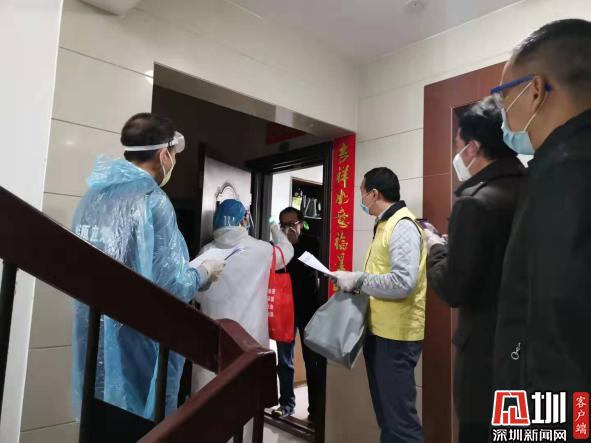 許曉銳(著黃馬甲)協(xié)助醫(yī)生對(duì)韓國(guó)返深家庭進(jìn)行核酸檢測(cè)采樣