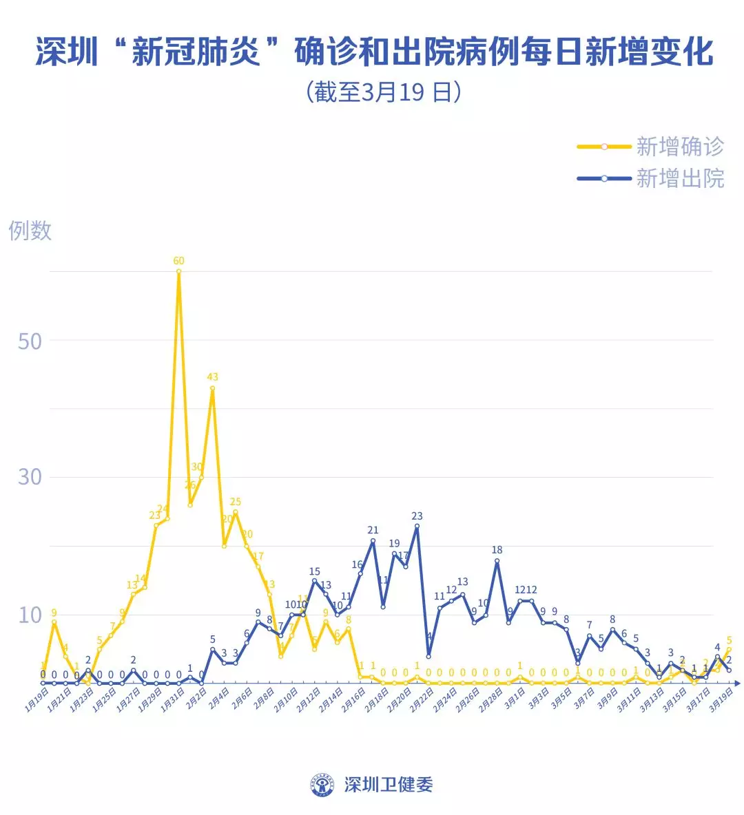 截至3月19日24時,深圳累計報告“新冠肺炎”病例432例。3月19日當天新增5例,出院2例。