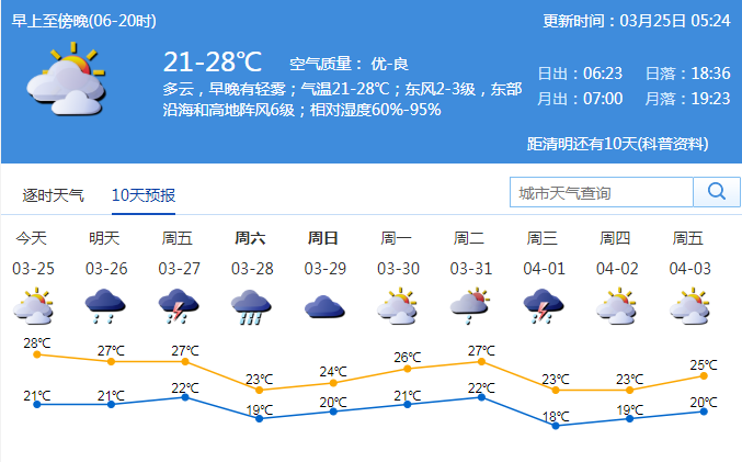 見圳客戶端·深圳新聞網(wǎng)2020年3月25日訊 近期我市氣溫明顯上升,連續(xù)3天最高氣溫達28℃左右。今日深圳多云,早晚有輕霧;氣溫21-28℃;東風2-3級,東部沿海和高地陣風6級;相對濕度60%-95%。