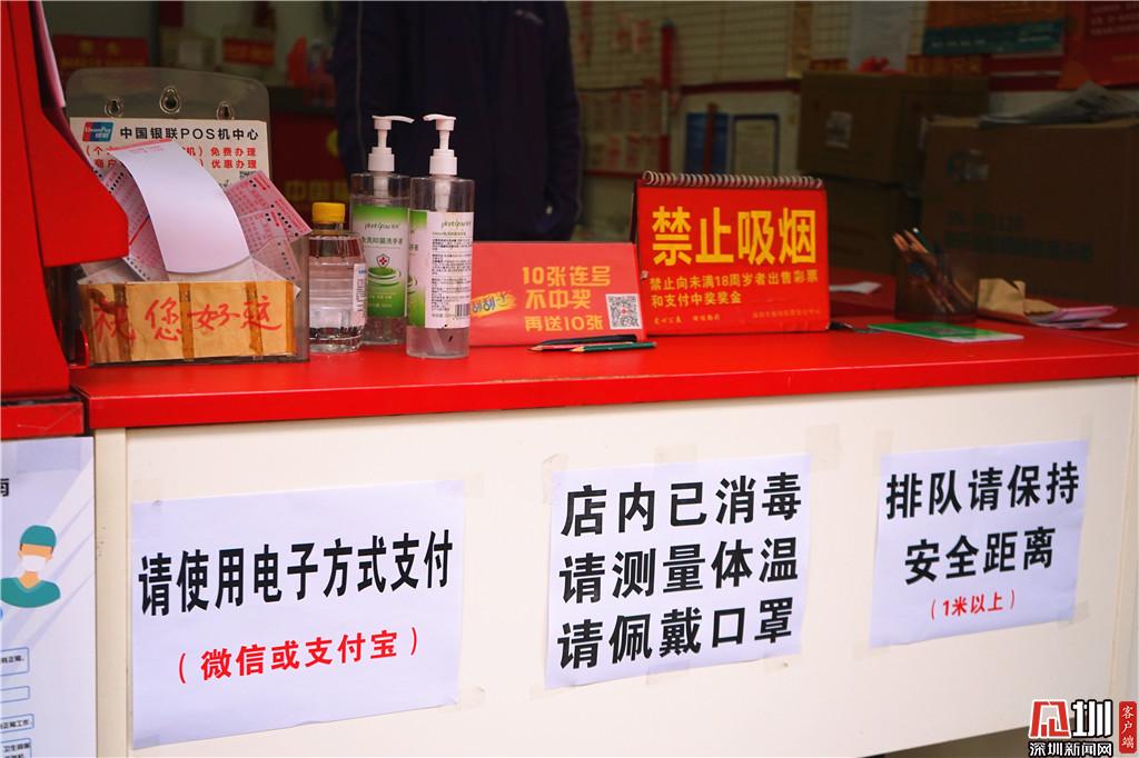 另一家在福田區(qū)華發(fā)北路,店號為83021044的投注站點,門口已經(jīng)被店員用桌子堵上,并貼上了相關(guān)防疫告示,“之前深圳福彩中心的工作人員來檢查過,后續(xù)也會給我們配送一些防護物資。”記者在此觀察了30分鐘,期間僅有兩位彩民前來,共購買了8元彩票。店主馬先生向記者介紹,“以前大家都會來店里邊坐,主要買的是20分鐘開兩次的‘快樂彩’,現(xiàn)在都不給進來,那個彩票也暫停銷售了。”