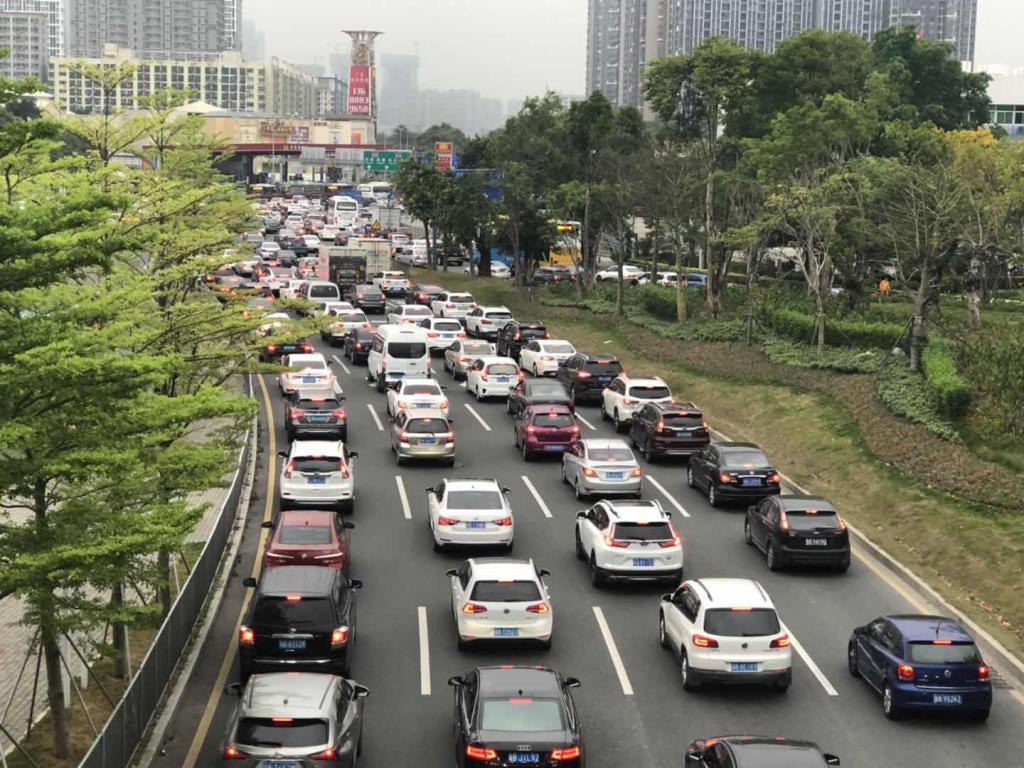 8時18分,深晚記者在民樂地鐵站附近的人行天橋上看到,此時梅林關(guān)雙方向車流量非常大,車輛一直處于走走停停的狀態(tài)。