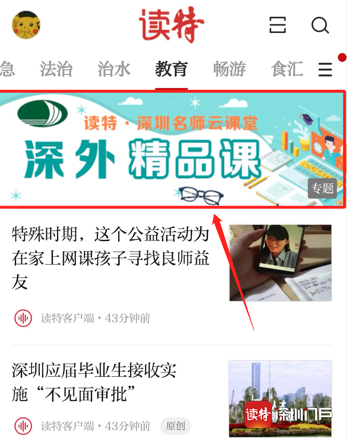 打開(kāi)讀特客戶端,點(diǎn)擊“教育”頻道