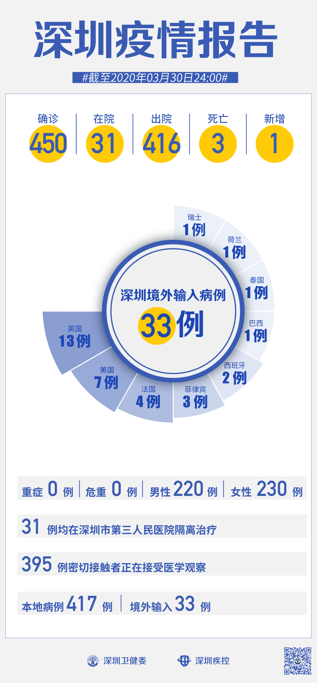 3月30日,深圳確診1例境外輸入“新冠肺炎”新病例,累計達(dá)33例。