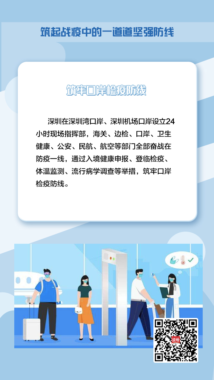 深圳在深圳灣口岸、深圳機(jī)場(chǎng)口岸設(shè)立24小時(shí)現(xiàn)場(chǎng)指揮部,海關(guān)、邊檢、口岸、衛(wèi)生健康、公安、民航、航空等部門(mén)全部奮戰(zhàn)在防疫一線,通過(guò)入境健康申報(bào)、登臨檢疫、體溫監(jiān)測(cè)、流行病學(xué)調(diào)查等舉措,筑牢口岸檢疫防線。