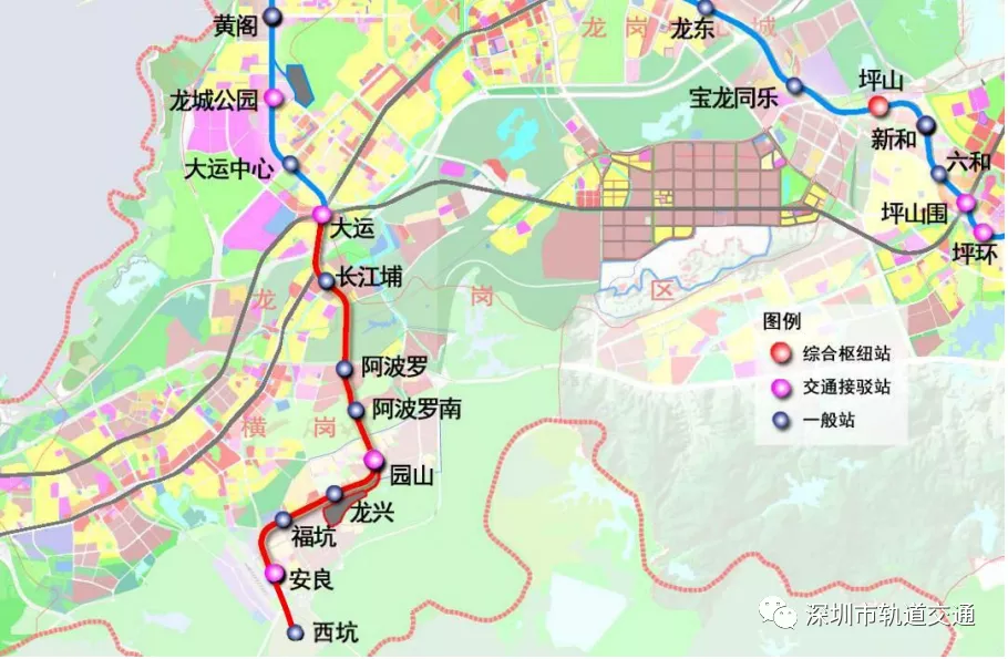 16號線二期工程自大運(yùn)站至西坑站,線路長度9.53公里,為地下線,采用A型車6輛編組;建設(shè)工期5年。