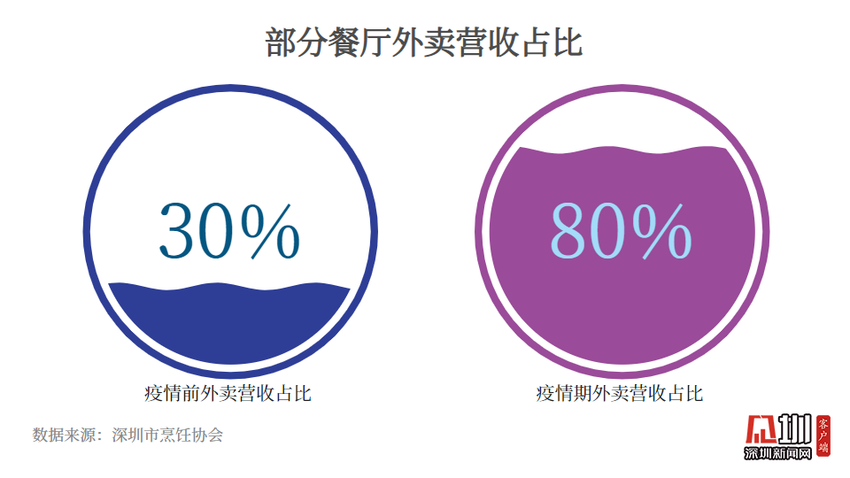 大秦小宴、云海肴……深圳餐飲行業(yè)靠外賣實現(xiàn)“突圍”。根據(jù)深圳市烹飪協(xié)會的數(shù)據(jù),在疫情期間,部分餐飲店的外賣營收額占比增長了200%,一些過去不提供外賣服務的商家,如傳統(tǒng)大酒樓、米其林餐廳、五星級酒店等,為了創(chuàng)收,也加入到了外賣平臺。“以前外賣營收能占總收入30%就算不錯的,疫情期部份餐廳已經(jīng)占到收入的80%甚至90%?!鄙钲谑信腼儏f(xié)會常務副會長劉永忠介紹。