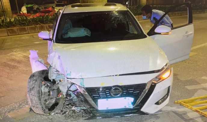 結(jié)果,連撞四車后又撞上公交站臺(tái)。