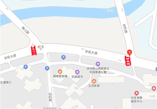 紅色畫筆標(biāo)示的地方,即為學(xué)苑大道上設(shè)計(jì)不合理的斑馬線。