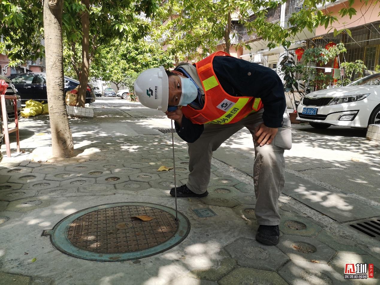 福田分公司維修隊員王軍,正探查漏水點。為及時、精準(zhǔn)地找出隱藏的漏水點,節(jié)約水資源,具有“管線醫(yī)生”之稱的探漏員,風(fēng)雨無阻,走遍大街小巷。