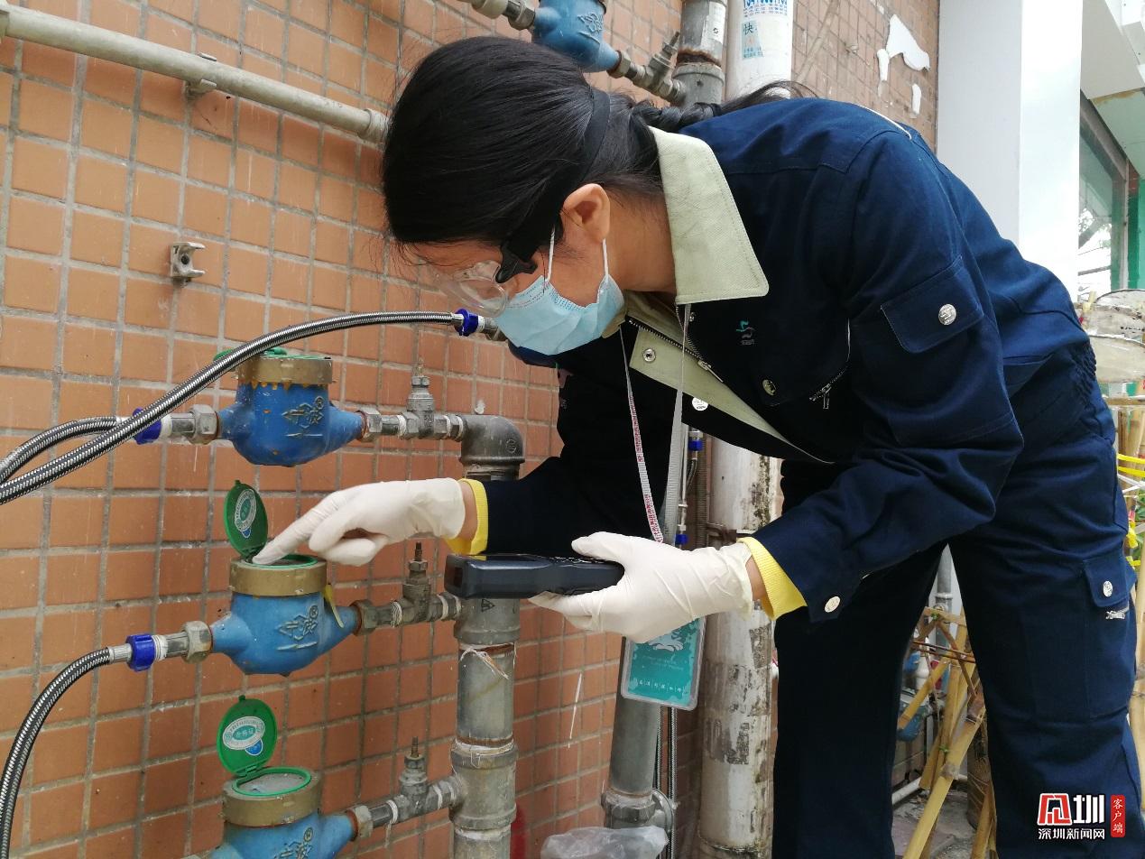 為準(zhǔn)確讀取疫情期間市民的用水信息,南山分公司抄表員陳秋斐,在做好防護(hù)工作后,前往小區(qū)讀取水表。