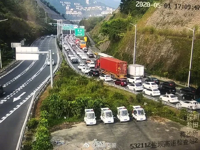 17時(shí)許,大鵬交通出現(xiàn)明顯高峰,坪葵路交通一直緩行至接近小梅沙路段。