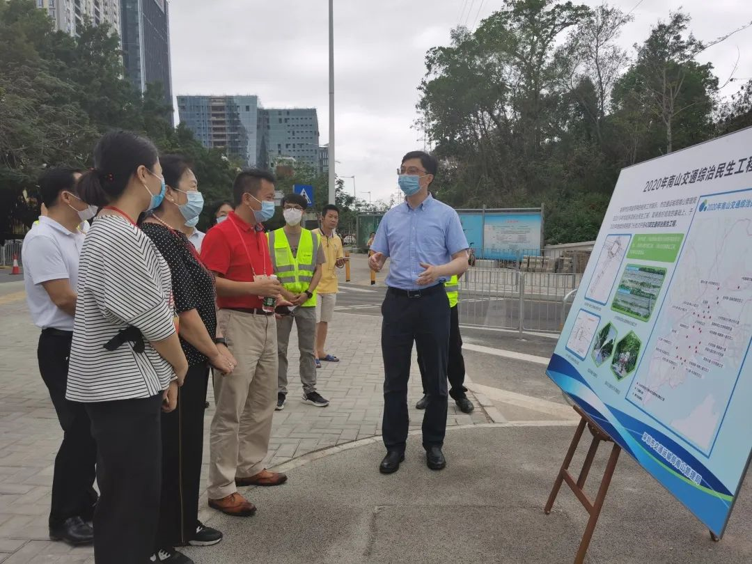 ▲體驗結(jié)束后,在調(diào)研現(xiàn)場,深圳市交通運輸局南山管理局相關(guān)負責(zé)人向區(qū)人大代表們講解今年南山交通綜治民生工程。消息報記者肖佩攝