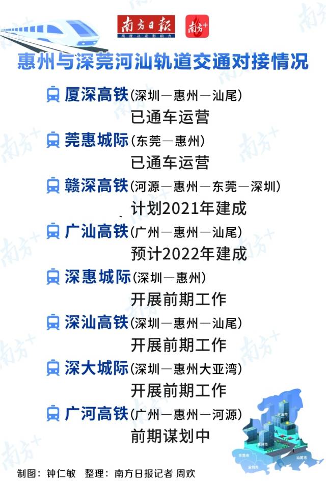 值得一提的是,待廣汕高鐵2022年建成后,從惠州到廣州、汕尾也只要半小時。贛深高鐵和廣汕高鐵還將在惠州實現(xiàn)轉(zhuǎn)換銜接。加上正在開展前期工作的深惠城際、深汕高鐵、深大城際等,軌道上深圳都市圈將初步成形。而惠州也將成為大灣區(qū)連接粵東、粵北以及閩贛地區(qū)的樞紐門戶。