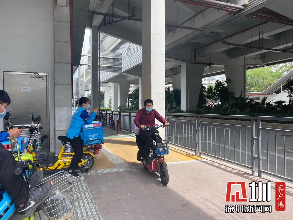 路邊等候接單的外賣配送員與路過的市民,均口罩佩戴整齊。
