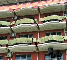 疫情期間停課,軍校生宿舍被子“閑置”了4個月,“豆腐塊”變“腐乳”。近期,返校在即,留在學(xué)校的學(xué)生把每個宿舍的被子拿出來晾。