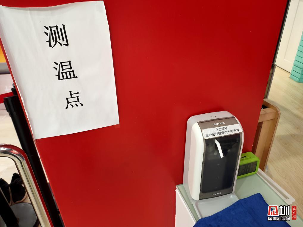 游樂場(chǎng)入口有專人測(cè)量體溫并記錄,為每一位進(jìn)入的顧客進(jìn)行酒精殺毒。
