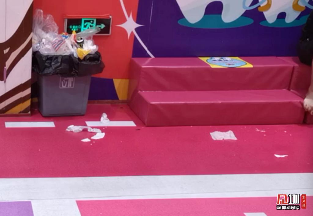 游樂場(chǎng)有家長(zhǎng)休息區(qū),在前臺(tái)還有充電寶租借。但是記者注意到,在休息區(qū)角落不少垃圾散落在地面,垃圾桶裝滿了工作人員也沒有及時(shí)過來(lái)清理。