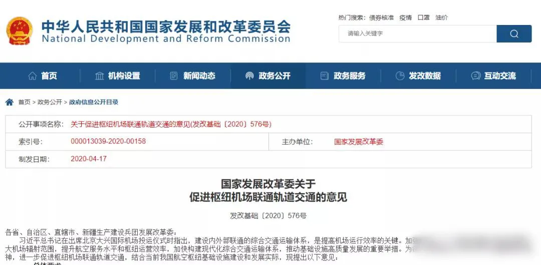 今年4月,國家發(fā)展改革委發(fā)布促進樞紐機場聯(lián)通軌道交通的意見,要求加強樞紐機場與軌道交通的互聯(lián)互通,提升航空服務(wù)水平和樞紐運營效率,加快構(gòu)建現(xiàn)代化綜合交通運輸體系。
