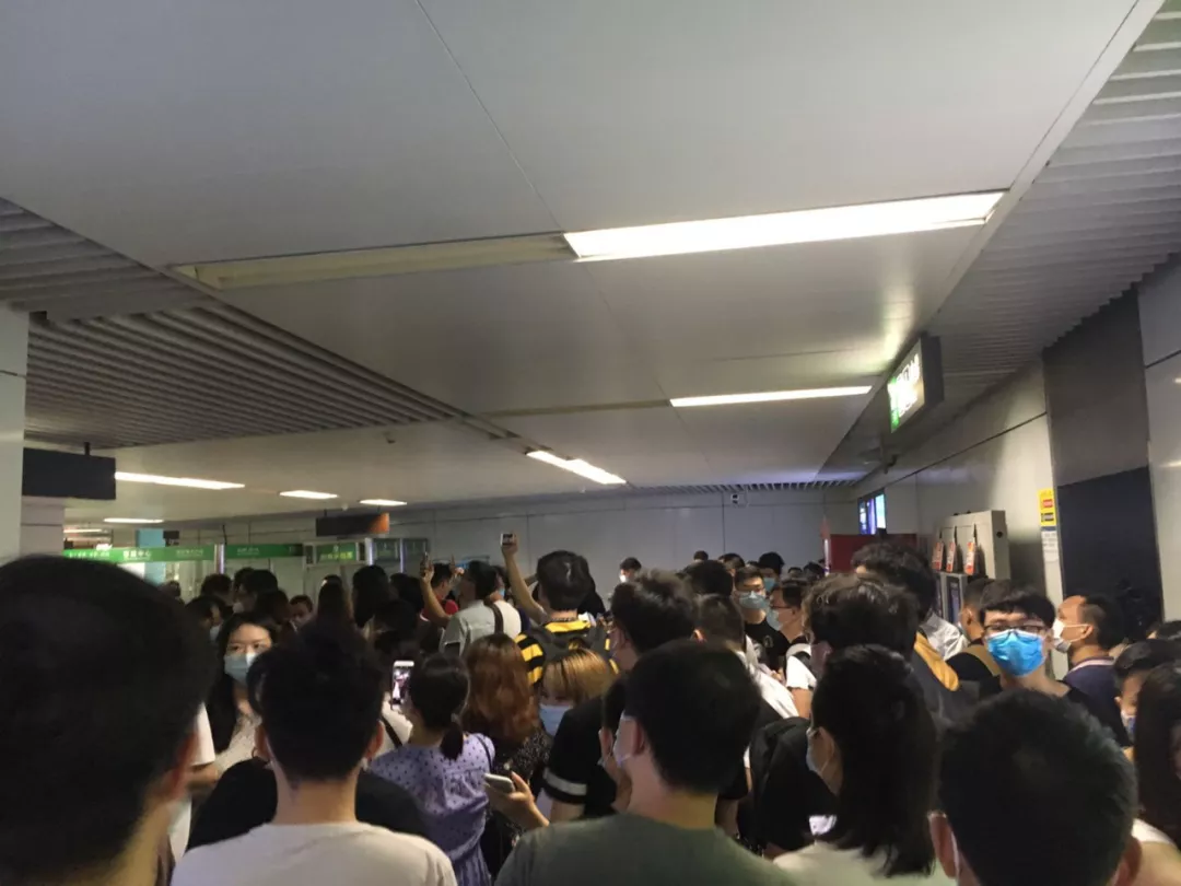 由于地鐵出現(xiàn)延誤,大批乘客滯留在地鐵站內(nèi)。