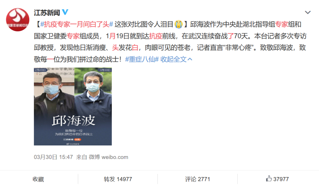 這是此前因“一月白頭”被網(wǎng)友熟知的國家衛(wèi)健委救治專家組成員、東南大學(xué)附屬中大醫(yī)院副院長邱海波。