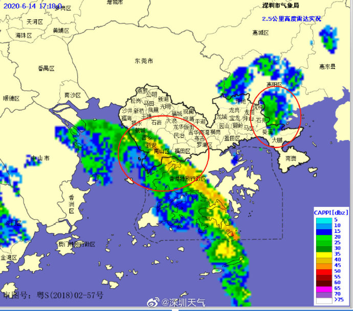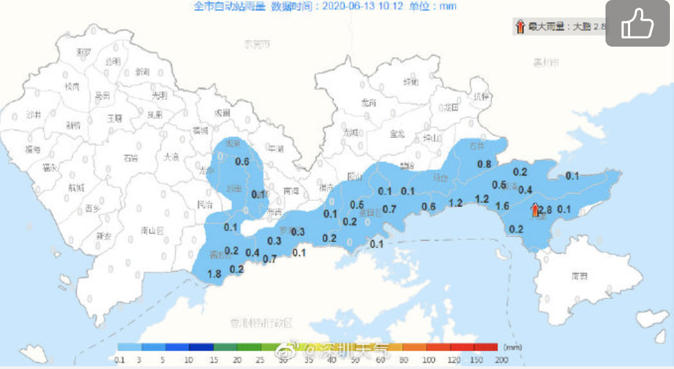深圳市氣象臺2020年06月13日16時(shí)56分發(fā)布:預(yù)計(jì)17-20時(shí),全市多云到陰天,有(雷)陣雨;降雨入夜后趨于明顯;偏東到東南風(fēng)4-5級,陣風(fēng)6-8級,風(fēng)力逐漸加大;目前全市雷電預(yù)警信號和臺風(fēng)藍(lán)色預(yù)警信號生效中,外出注意交通行駛安全。