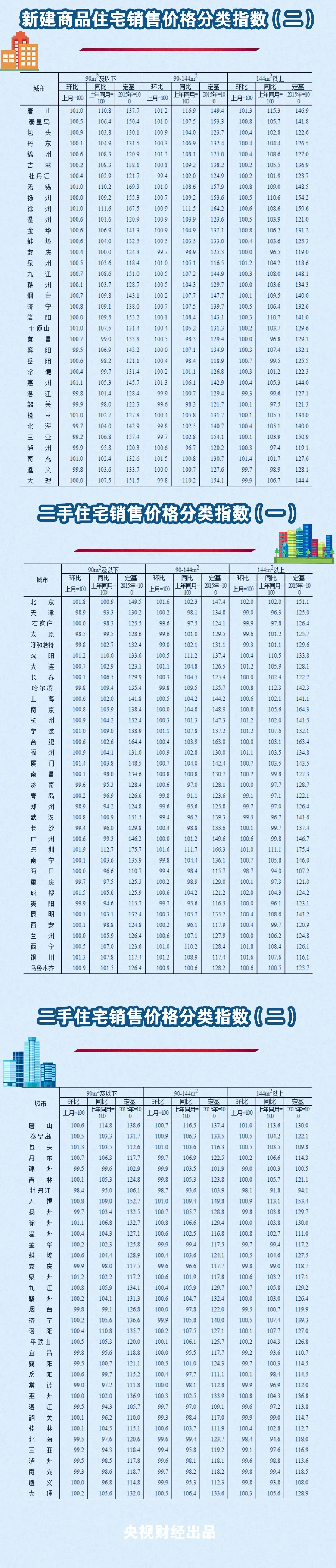 央視財(cái)經(jīng)2020年6月15日訊 國(guó)家統(tǒng)計(jì)局今天發(fā)布的5月份70大中城市新建商品住宅銷(xiāo)售價(jià)格顯示:一二三線(xiàn)城市新建商品住宅銷(xiāo)售價(jià)格環(huán)比漲幅均略有擴(kuò)大,二手住宅漲幅與上月相同或微擴(kuò)。環(huán)比看,銀川漲幅2.1%領(lǐng)跑。