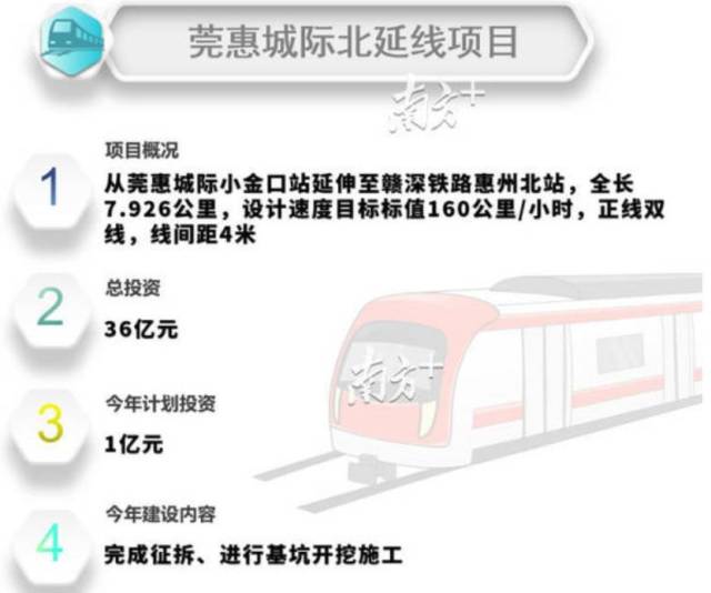 南方日報、南方+記者留意到,前不久,惠州市發(fā)改局在《惠州市2020年重點(diǎn)建設(shè)項目計劃》中,已經(jīng)把莞惠城際北延線項目列為今年新開工項目。該線路設(shè)計速度目標(biāo)標(biāo)值160公里/小時,正線雙線,線間距4米。