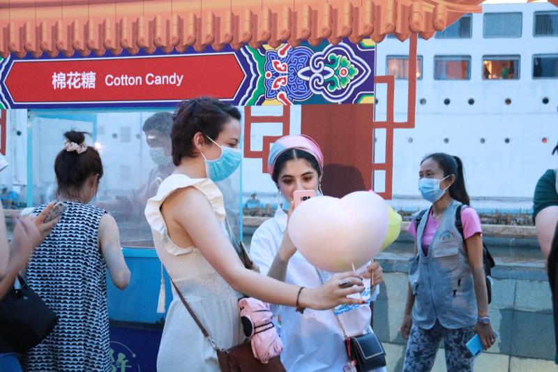 糖畫、捏面人、穿漢服……當(dāng)晚的海上世界廣場熱鬧祥和,約300人次中外居民歡聚一起,互致美好祝福,在感受中國傳統(tǒng)文化當(dāng)中共度端午佳節(jié)。