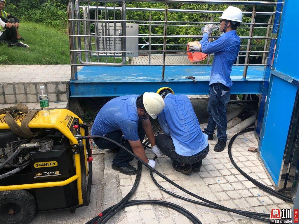 正午烈日下深圳水務集團工作人員正在進行作業(yè)。