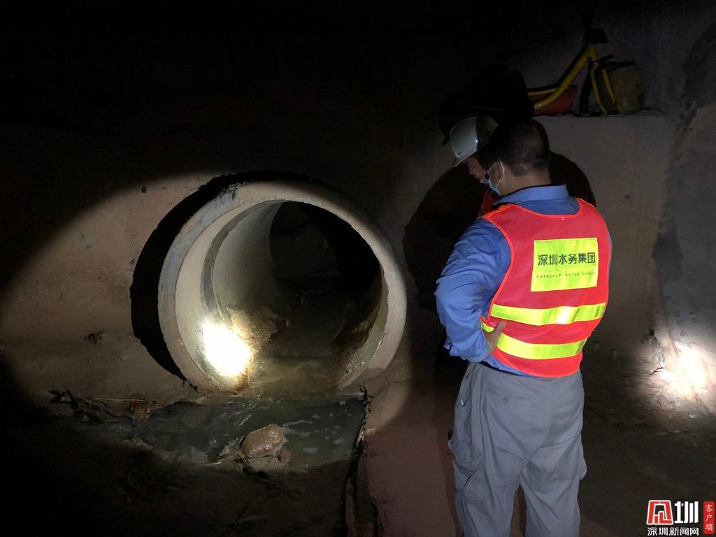 工作人員對(duì)地下暗涵進(jìn)行檢查。