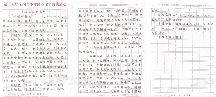 據(jù)活動組委會相關(guān)負責(zé)人介紹,“第十五屆全國青少年冰心文學(xué)盛典”以“2020文學(xué)之路,向上的力量”為主題,全程公益免費,設(shè)置了小學(xué)低年級組(1-3年級 )、小學(xué)高年級組(4-6年級 )、初中組、高中組、大學(xué)組、教師組、文學(xué)愛好者組等多個組別。值得注意的是,所有報名選手必須使用本次活動專用稿紙進行書寫創(chuàng)作。組委會將會根據(jù)選手報名提交的郵寄地址免費郵寄活動專用稿紙,每人僅限領(lǐng)取5張。選手完成手寫作品以后,將作品掃描或拍照發(fā)送到全國青少年冰心文學(xué)寫作指導(dǎo)中心深圳組委會指定郵箱szbxwx@126.com(冰心文學(xué)深圳)或gdbxwx@126.com(冰心文學(xué)廣東)。