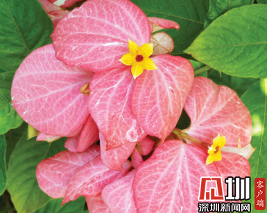 株高1~2米,生性強(qiáng)健,喜高溫,耐旱。半落葉灌木,葉對(duì)生,長(zhǎng)橢形,全緣,葉面粗,尾銳尖,葉柄短,小花金黃色,高杯形合生呈星形,花小很快掉落,經(jīng)常只看到其萼片,且萼片肥大,盛開(kāi)時(shí)滿株粉紅色,非常醒目。花期夏至秋冬,聚散花序頂生,很少結(jié)果。