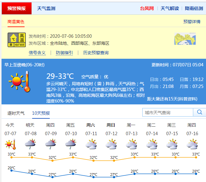 見(jiàn)圳客戶(hù)端·深圳新聞網(wǎng)2020年07月07日訊 據(jù)深圳市氣象臺(tái)預(yù)測(cè),今日多云間晴天,局地有短時(shí)(雷)陣雨,天氣悶熱,最高氣溫33-35℃,高溫黃色預(yù)警信號(hào)生效中。8日持續(xù)悶熱,有局地短時(shí)(雷)陣雨,易出現(xiàn)在早晨和午后;9-10日(學(xué)業(yè)考)天氣悶熱,有雷陣雨,部分時(shí)間雨勢(shì)較大,最高氣溫32-33℃。