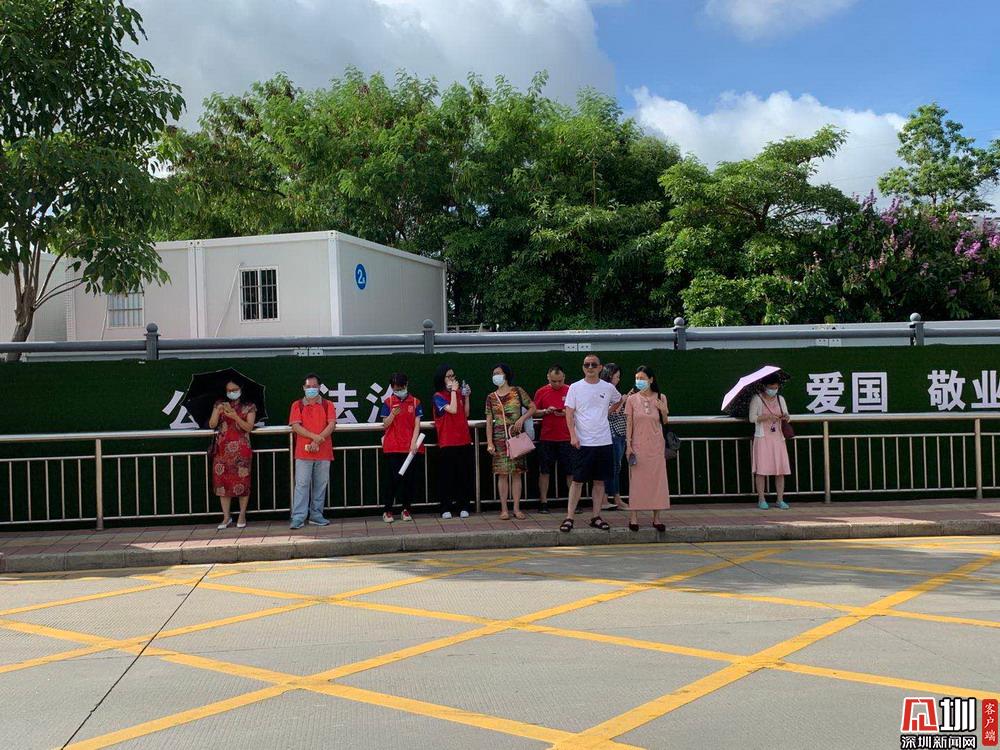 【紅嶺中學(xué)】在考點穿著紅色衣服等待考生的家長們。