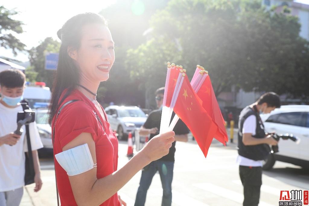 一名家長(zhǎng)自費(fèi)購買100個(gè)小國旗發(fā)放給考生,為他們加油助威。