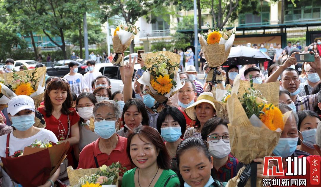 考生家長(zhǎng)手拿向日葵,??忌慌e奪魁。