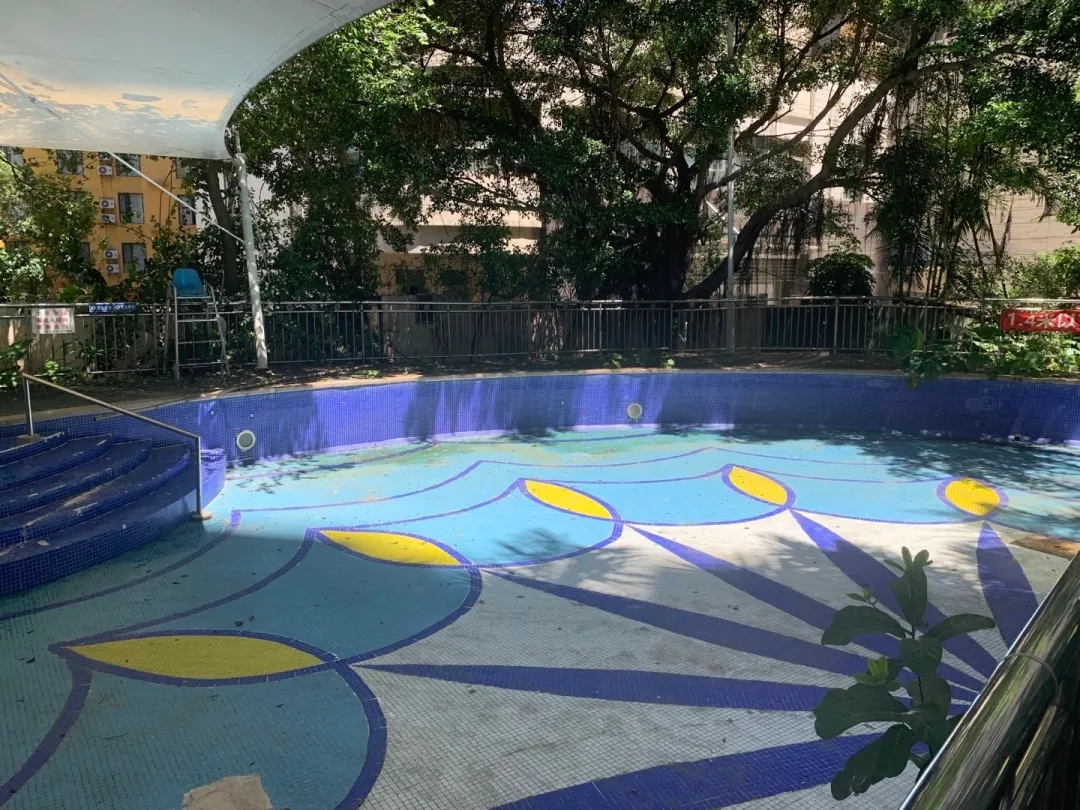 ▲截至6月底,新一代國際公寓泳池仍未開放。消息報記者 曹燚煒 攝
