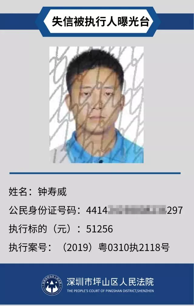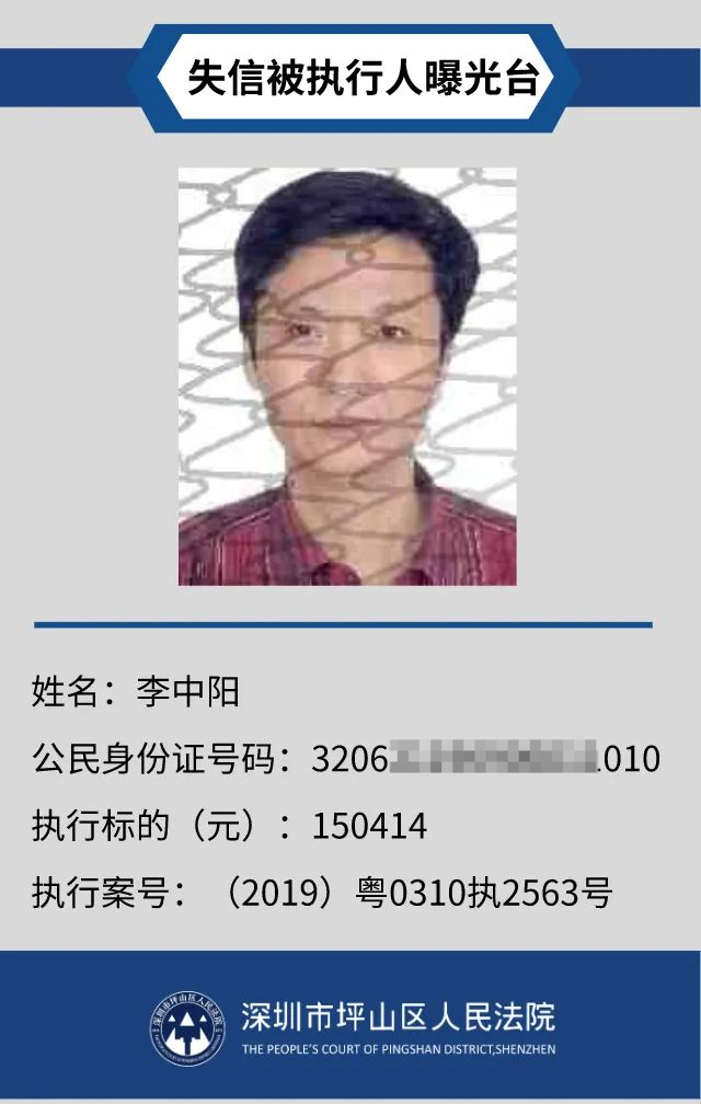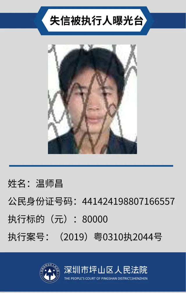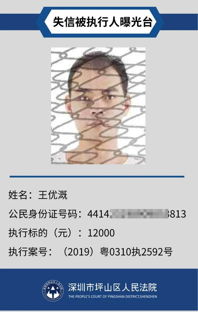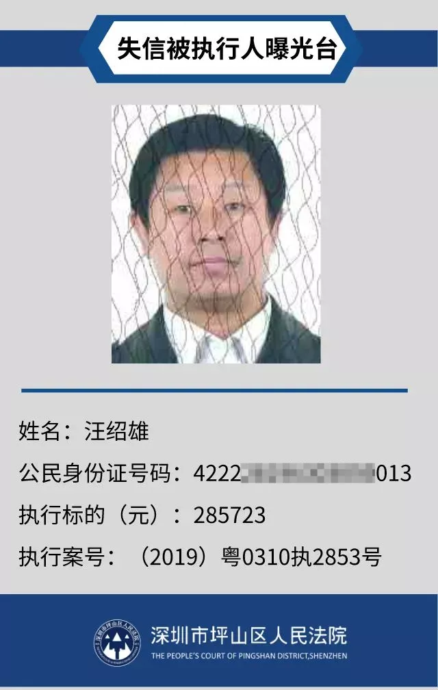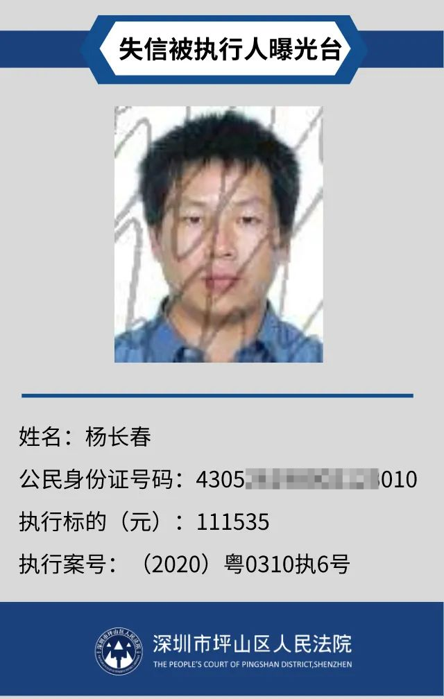 為督促被執(zhí)行人自覺履行生效法律文書確定的義務(wù),推進(jìn)社會(huì)誠信體系建設(shè),深圳市坪山區(qū)人民法院根據(jù)《中華人民共和國民事訴訟法》第二百五十五條、《最高人民法院公布失信被執(zhí)行人名單信息若干規(guī)定》第一條和第七條之規(guī)定,現(xiàn)對31名失信被執(zhí)行人予以公布。名單信息根據(jù)案件結(jié)案情況及時(shí)更新,歡迎舉報(bào)失信被執(zhí)行人行蹤及財(cái)產(chǎn)線索,相關(guān)信息核實(shí)請聯(lián)系深圳市坪山區(qū)人民法院執(zhí)行局。