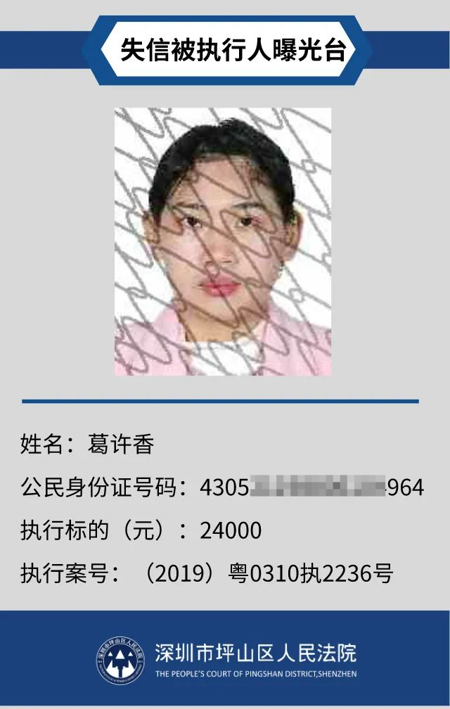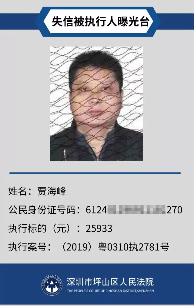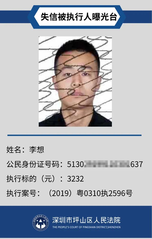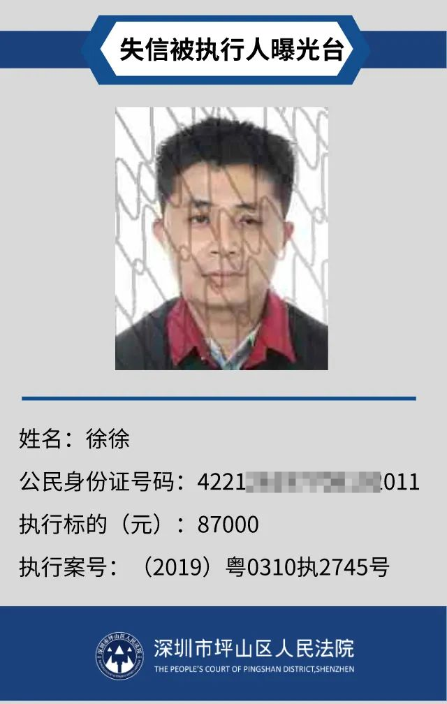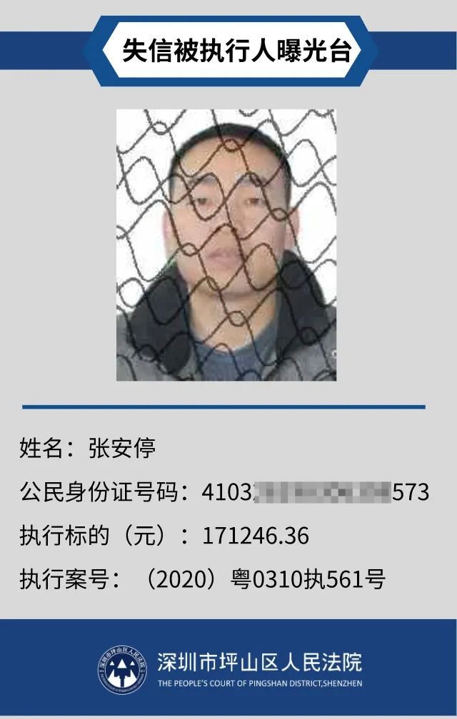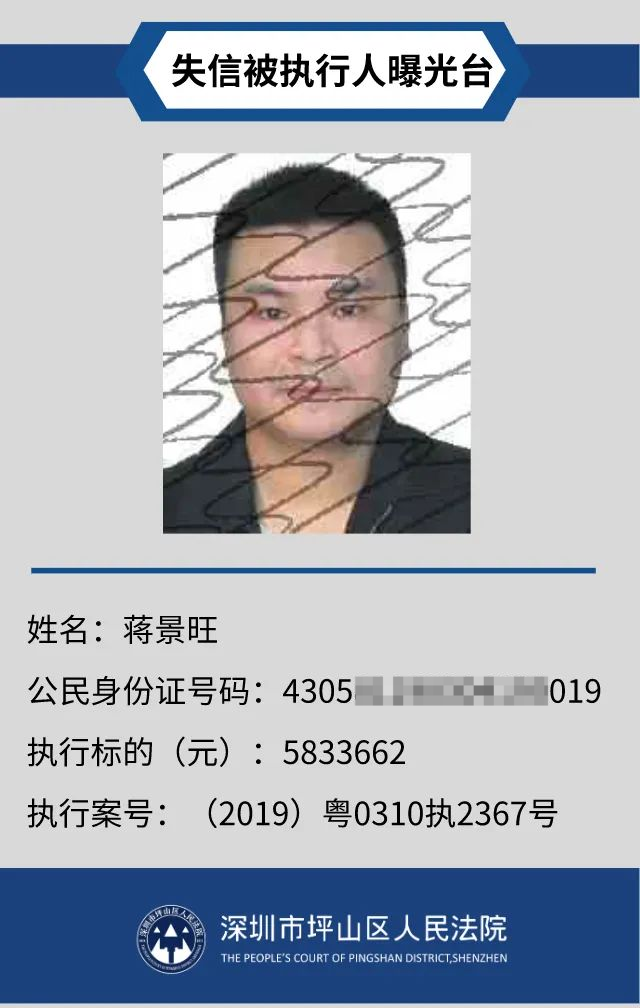 為督促被執(zhí)行人自覺履行生效法律文書確定的義務(wù),推進(jìn)社會(huì)誠信體系建設(shè),深圳市坪山區(qū)人民法院根據(jù)《中華人民共和國民事訴訟法》第二百五十五條、《最高人民法院公布失信被執(zhí)行人名單信息若干規(guī)定》第一條和第七條之規(guī)定,現(xiàn)對31名失信被執(zhí)行人予以公布。名單信息根據(jù)案件結(jié)案情況及時(shí)更新,歡迎舉報(bào)失信被執(zhí)行人行蹤及財(cái)產(chǎn)線索,相關(guān)信息核實(shí)請聯(lián)系深圳市坪山區(qū)人民法院執(zhí)行局。