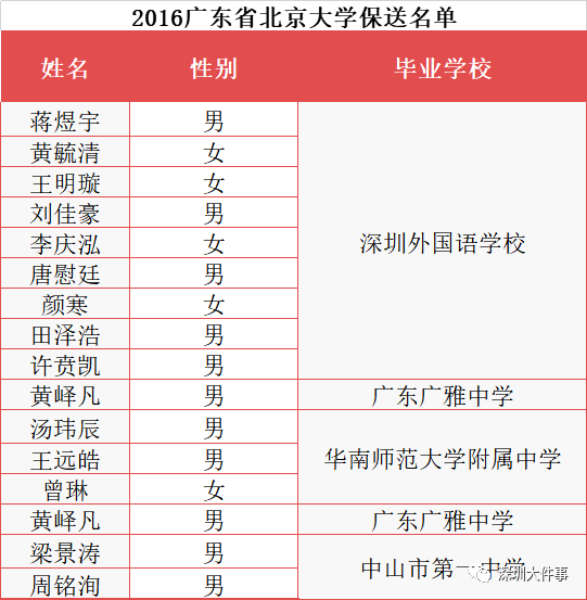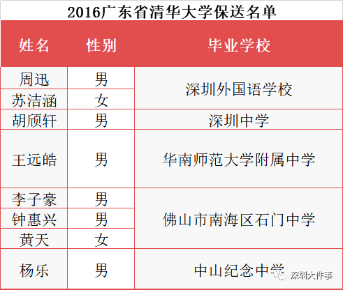 2016年廣東省清北保送共24人,深圳12人,深外獨(dú)占11人;