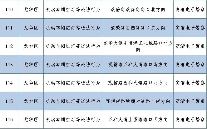 新增116套電子警察監(jiān)控設(shè)備,用于查處闖紅燈、逆行、進(jìn)入導(dǎo)向車道變更車道等違法行為,分布在車流量較大的信號(hào)路口及路段。