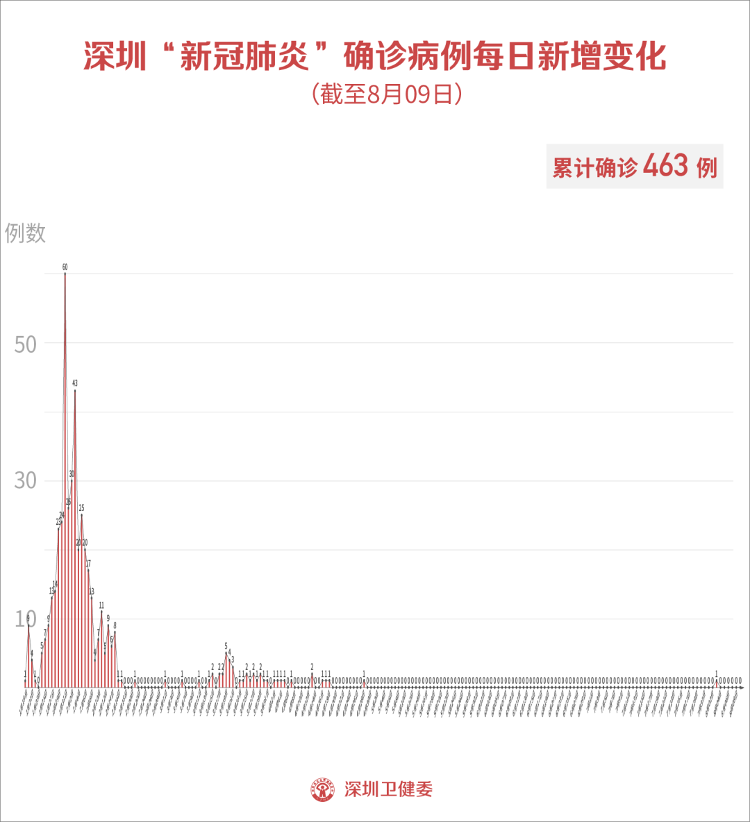 截至8月9日24時(shí),深圳市累計(jì)報(bào)告新冠肺炎確診病例463例。目前在院1例。