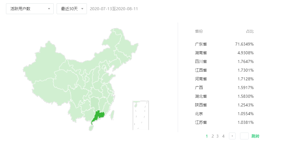 從“高考擇校助手”的用戶IP訪問地址來看,來自廣東省的用戶數(shù)量最多,占了總訪問量的71.63%。接下來的訪問量排名靠前的依次是湖南、四川、江西、河南、廣西、湖北、北京、江蘇的用戶。