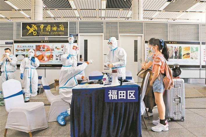 深圳灣口岸,按規(guī)定需要集中隔離醫(yī)學(xué)觀察的入境旅客在工作人員的帶領(lǐng)下分區(qū)搭乘巴士前往隔離點(diǎn)。(來(lái)源:深圳特區(qū)報(bào))