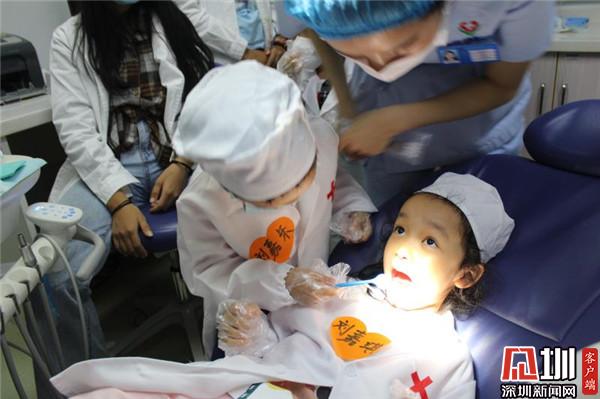 深圳新聞網(wǎng)訊(見圳客戶端、深圳新聞網(wǎng)記者 李慧 通訊員 楊紀(jì)歐)10月25日,羅湖區(qū)桂園街道老圍社區(qū)黨群服務(wù)中心組織社區(qū)青少年到醫(yī)院開展了一場社會實踐體驗活動,13位小朋友身穿白大褂,頭戴醫(yī)生帽,手拿口腔鏡,為“病人”檢查牙齒,當(dāng)了一回牙醫(yī),體驗了當(dāng)醫(yī)生的快樂,同時也感知到愛護(hù)牙齒的重要。3歲的劉嘉樂小朋友給姐姐看完牙齒后對媽媽說:“媽媽,姐姐有蛀牙。我以后也要好好刷牙?!?/span>