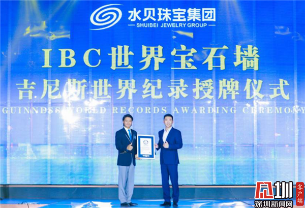 在本次“天工精制”見證盛典活動上,舉行了IBC世界寶石墻吉尼斯世界紀(jì)錄授牌儀式,水貝珠寶集團副總裁盧森榮從吉尼斯世界紀(jì)錄官方認(rèn)證官楊紹鵬手中接過認(rèn)證證書,標(biāo)志著IBC世界寶石墻挑戰(zhàn)世界“面積最大,珠寶種類最豐富”的寶石壁畫紀(jì)錄成功。全場嘉賓一同親歷“世界之最”的誕生,高端賽事見證國際殊榮,IBC世界寶石墻閃耀而來,這件劃時代的藝術(shù)作品成為世界珠寶文化的傳播載體與精神堡壘,是一個偉大的壯舉。