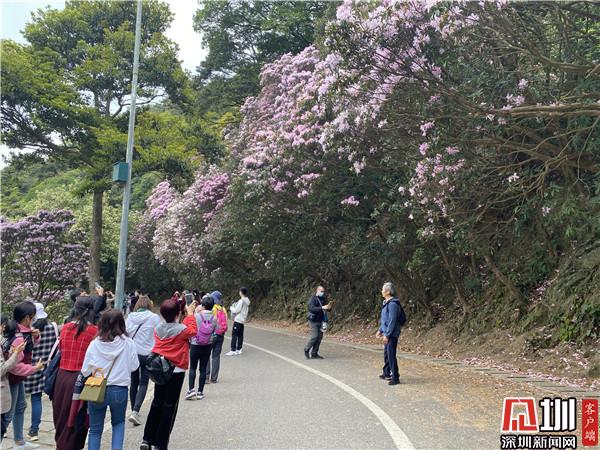 “大家平時有沒有來爬過梧桐山呢?你們知道梧桐山的最高峰是多少嗎?在梧桐山一共種植了多少毛棉杜鵑呢?”初入梧桐山,醫(yī)護人員們在游覽車上看著一路盛放的杜鵑,導賞員在旁向大家介紹梧桐山風景區(qū)的特色和花會盛況。據(jù)了解,3月18日至4月6日是深圳市梧桐山第六屆毛棉杜鵑花會,為進一步落實關(guān)愛抗疫醫(yī)護人員,羅湖面向抗疫一線醫(yī)護人員開設專場導賞,由梧桐山優(yōu)秀導賞員提供自然導賞,領(lǐng)略景區(qū)風光、認識沿途植物等,讓守在抗疫一線的白衣戰(zhàn)士領(lǐng)略最美的春光。